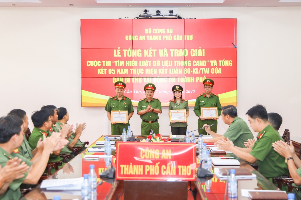Năm 2025, Bộ Công an đã triển khai đồng bộ các hoạt động hưởng ứng Ngày Pháp luật, gắn với việc thực hiện nhiệm vụ chính trị, cải cách hành chính, chuyển đổi số và nâng cao ý thức chấp hành pháp luật trong toàn lực lượng. Các đơn vị, địa phương đã chủ động, sáng tạo trong tuyên truyền, phổ biến, giáo dục pháp luật, góp phần xây dựng hình ảnh người chiến sĩ Công an nhân dân bản lĩnh, nhân văn, vì Nhân dân phục vụ. Hiện nay, Bộ Công an đang tiếp tục trình Quốc hội tại Kỳ họp thứ 10 khóa XV cho ý kiến và thông qua 10 dự án luật và 1 pháp lệnh. Để triển khai thi hành các luật, pháp lệnh, nghị quyết và thực hiện chức năng quản lý nhà nước về an ninh trật tự, Bộ Công an đã chủ trì xây dựng, trình cấp có thẩm quyền ban hành và ban hành theo thẩm quyền 166 văn bản quy phạm pháp luật gồm: 22 nghị định của Chính phủ, 1 nghị quyết của Chính phủ, 3 quyết định của Thủ tướng Chính phủ, 140 thông tư của Bộ trưởng Bộ Công an.Trung tướng Phạm Công Nguyên, Cục trưởng Cục Pháp chế và cải cách hành chính, tư pháp báo cáo kết quả triển khai các hoạt động hưởng ứng Ngày Pháp luật trong CAND Qua 5 năm thực hiện Kết luận số 80-KL/TW của Ban Bí thư và Quyết định số 1521/QĐ-TTg của Thủ tướng Chính phủ, công tác phổ biến, giáo dục pháp luật trong Công an nhân dân đạt nhiều kết quả nổi bật. Nhận thức, trách nhiệm của cấp ủy, lãnh đạo, cán bộ, chiến sĩ được nâng lên; nội dung, hình thức tuyên truyền ngày càng phong phú, đa dạng; ứng dụng mạnh mẽ công nghệ số, mở rộng các kênh tuyên truyền trên mạng xã hội, báo chí, truyền hình, góp phần nâng cao hiệu quả quản lý nhà nước về an ninh, trật tự. Cũng trong khuôn khổ buổi lễ, Bộ Công an tổng kết Cuộc thi “Tìm hiểu Luật Dữ liệu trong Công an nhân dân”. Sau hơn 5 tháng triển khai, cuộc thi thu hút hàng trăm tập thể, cá nhân tham gia với nhiều bài viết sáng tạo, đầu tư công phu, phản ánh sinh động tinh thần học tập, nghiên cứu, tìm hiểu pháp luật trong thời kỳ chuyển đổi số. Ban Tổ chức đã lựa chọn và trao 44 giải thưởng cho các tập thể, cá nhân có thành tích xuất sắc. Tại điểm cầu Công an thành phố Cần Thơ, Giám đốc Công an thành phố tổ chức khen thưởng cho 03 tập thể có thành tích xuất sắc trong 5 năm thực hiện Kết luận số 80-KL/TW của Ban Bí thư. Đồng thời công bố Quyết định công nhận kết quả Cuộc thi viết “Tìm hiểu Luật Dữ liệu trong Công an nhân dân” của Ban Tổ chức Cuộc thi và trao thưởng cho 04 tập thể và 10 cá nhân đạt thành tích cao.Đại tá Lê Đức Bảy, Phó Giám đốc Công an thành phố trao Giấy khen tặng tập thể có thành tích xuất sắc trong 05 năm thực hiện Kết luận số 80 của Ban Bí thư Đại tá Nguyễn Văn Thắng, Phó Giám đốc Công an thành phố trao Chứng nhận cho tập thể, cá nhân đạt giải thưởng tại Cuộc thi “Tìm hiểu Luật Dữ liệu trong CAND” Kết quả của cuộc thi tiếp tục khẳng định vai trò, trách nhiệm tiên phong của lực lượng Công an nhân dân trong công tác phổ biến, giáo dục pháp luật; là động lực để toàn lực lượng không ngừng đổi mới nội dung, phương thức tuyên truyền, góp phần xây dựng Nhà nước pháp quyền xã hội chủ nghĩa Việt Nam vững mạnh, bảo đảm an ninh quốc gia, trật tự, an toàn xã hội, vì bình yên cuộc sống và hạnh phúc của Nhân dân./.