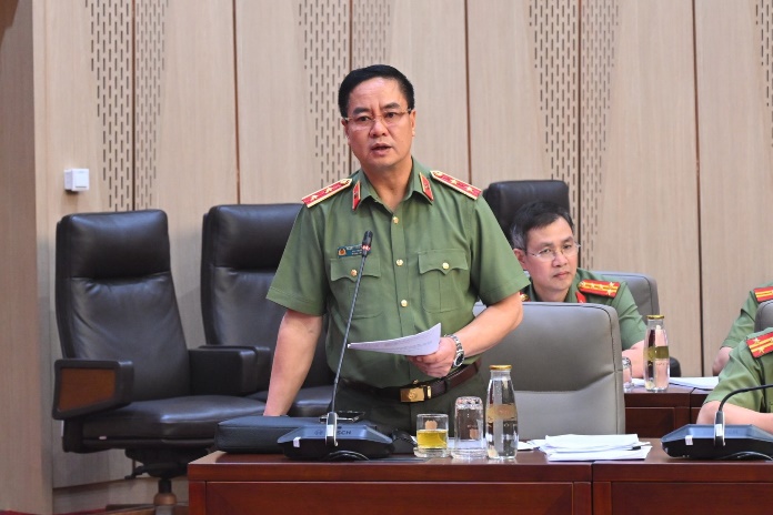Trung tướng Phạm Công Nguyên, Cục trưởng Cục Pháp chế và cải cách hành chính, tư pháp phát biểu tại phiên họp