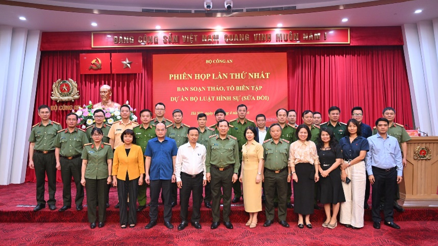 Tham dự phiên họp có các đại biểu, thành viên Ban soạn thảo, Tổ biên tập. Mở đầu phiên họp, các đại biểu đã nghe công bố Quyết định thành lập Ban soạn thảo, Tổ biên tập xây dựng dự án Bộ luật Hình sự (sửa đổi). Theo đó, Đại tướng Lương Tam Quang, Ủy viên Bộ Chính trị, Bộ trưởng Bộ Công an là Trưởng ban soạn thảo; Thượng tướng Lê Văn Tuyến, Ủy viên Trung ương Đảng, Thứ trưởng Bộ Công an là Phó Trưởng ban soạn thảo; Trung tướng Phạm Công Nguyên, Cục trưởng Cục pháp chế và cải cách hành chính, tư pháp, Bộ Công an là Tổ trưởng Tổ biên tập.