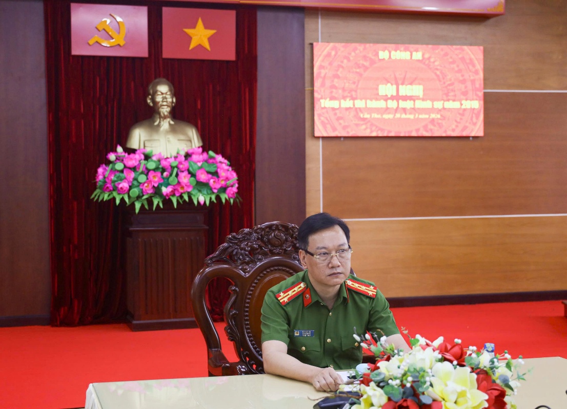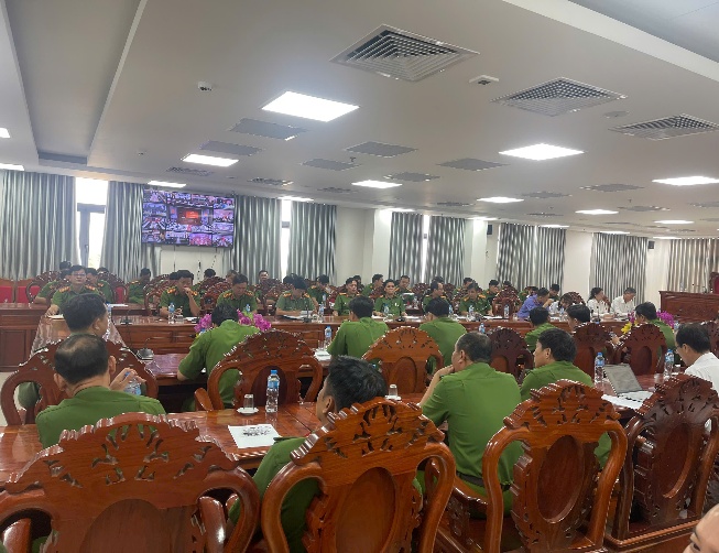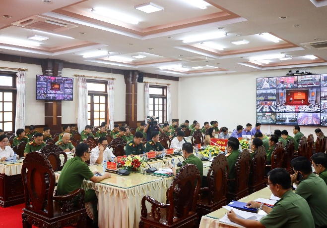 Tại điểm cầu Công an thành phố, hội nghị có sự tham dự của đại diện Thường trực Thành ủy, Ủy ban nhân dân, Hội đồng nhân dân, Ủy ban Mặt trận Tổ quốc, Viện Kiểm sát nhân dân thành phố và Viện Kiểm sát các khu vực, Tòa án nhân dân thành phố và Tòa án khu vực, Bộ Chỉ huy quân sự, Hội Luật gia, Viện Kiểm sát Quân sự Quân khu 9, Tòa án Quân sự Quân khu 9. Đại tá Bùi Đức An - Phó Giám đốc Công an thành phố dự chủ trì tại điểm cầu địa phương, cùng đại diện lãnh đạo Công an các đơn vị, Công an cấp xã với hình thức trực tuyến cùng lúc ở 03 điểm cầu, với số lượng khoảng 206 đại biểu tham dự.