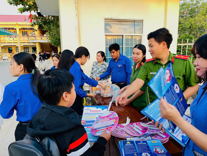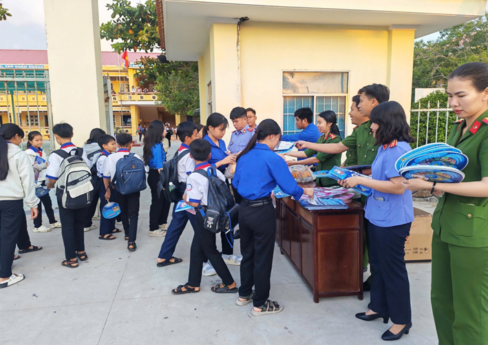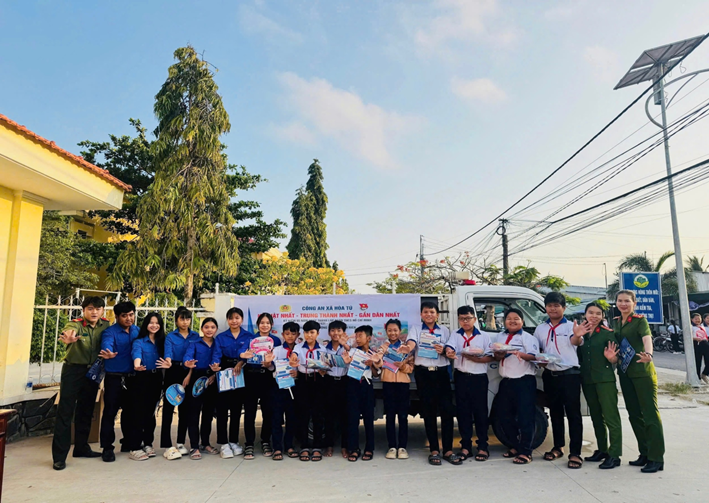 Theo đó, sáng ngày 26/3/2026, chương trình đã diễn ra tại Trường THCS Hòa Tú 1 (thuộc ấp Hòa Trực, xã Hòa Tú , thành phố Cần Thơ). Với sự chuẩn bị chu đáo, các chi đoàn đã trao tặng 100 phần bánh mì và nước suối đến tận tay các em học sinh. Điểm đặc biệt của hoạt động không chỉ dừng lại ở giá trị vật chất mà còn là cơ hội để lực lượng Công an xã tuyên truyền, phổ biến kiến thức pháp luật. Thông qua những chiếc quạt tay và tài liệu, các em học sinh đã được trang bị những kỹ năng quan trọng về phòng, chống ma túy học đường và đảm bảo an toàn giao thông đường bộ.