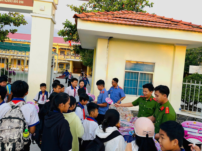 Tặng bánh mì, nước suối và tuyên truyền pháp luật đến các em học sinh