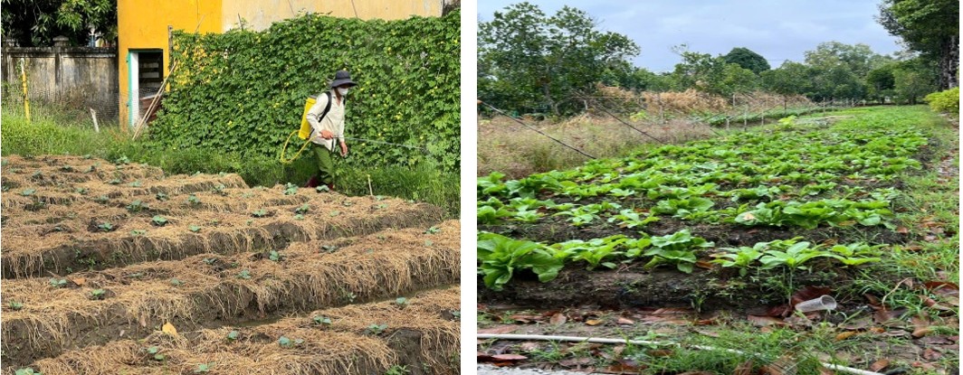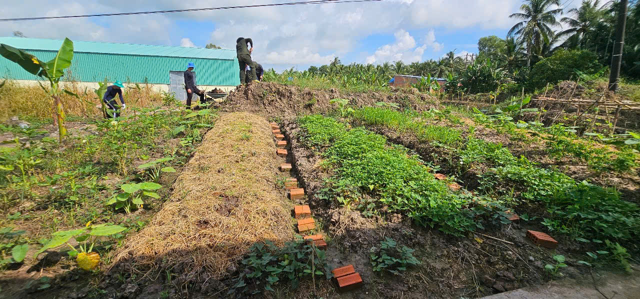Khu vườn tại đơn vị được quy hoạch trồng các loại cây đa dạng như: rau cải, rau muống, mướp, bầu, bí, khổ qua.... Để đảm bảo nguồn thực phẩm an toàn, CBCS áp dụng kỹ thuật canh tác khoa học: Sản xuất rau sạch, tận dụng nguồn nước tự nhiên. Ưu tiên sử dụng phân hữu cơ. Lựa chọn giống cây và kỹ thuật phù hợp với điều kiện khí hậu địa phương.