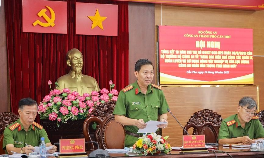 Sáng 14-10, tại điểm cầu Công an thành phố Cần Thơ, Đại tá Trần Hoàng Độ, Phó Giám đốc Công an thành phố dự và phát biểu tham luận trong khuôn khổ Hội nghị trực tuyến tổng kết 10 năm Chỉ thị số 04/CT-BCA-K20 ngày 08/6/2015 của Bộ trưởng Bộ Công an về “Nâng cao hiệu quả công tác quản lý, huấn luyện và sử dụng động vật nghiệp vụ của lực lượng Công an nhân dân trong tình hình mới” do Bộ Công an tổ chức tại Thủ đô Hà Nội.