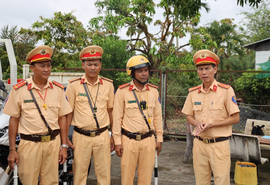 Thượng tá Trần Tấn Bền, Phó Trưởng phòng Cảnh sát giao thông (bìa phải) quán triệt việc tuần tra, kiểm soát là không giới hạn về không gian, thời gian
