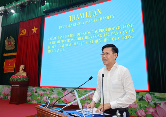 Đại diện lãnh đạo Ban Tuyên giáo và Dân vận Thành ủy phát biểu tham luận tại Hội nghị