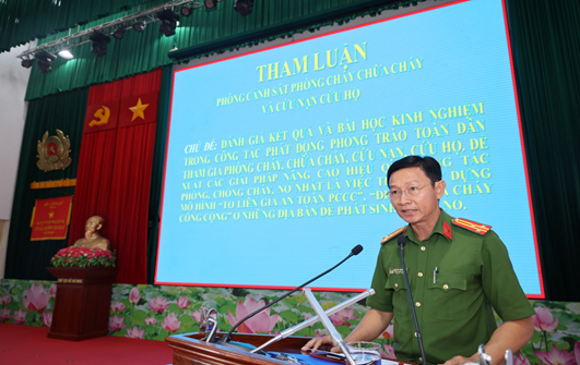 Đại diện lãnh đạo Phòng Cảnh sát phòng cháy, chữa cháy và cứu nạn, cứu hộ phát biểu tham luận tại Hội nghị