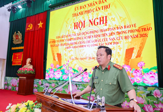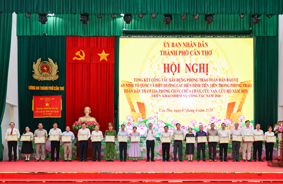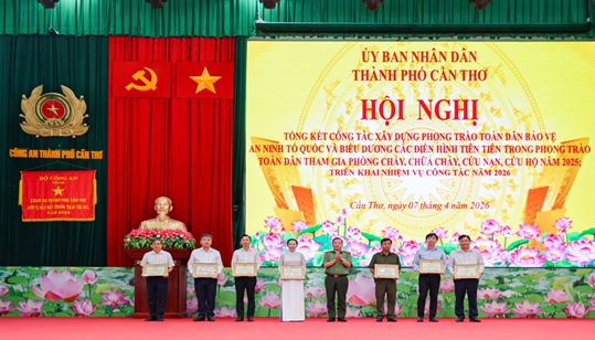 Sáng 07/4/2026, tại Hội trường A Công an thành phố, Ủy ban nhân dân thành phố Cần Thơ long trọng tổ chức Hội nghị tổng kết phong trào toàn dân bảo vệ an ninh Tổ quốc và biểu dương các điển hình tiên tiến trong phong trào toàn dân tham gia phòng cháy, chữa cháy, cứu nạn, cứu hộ năm 2025; triển khai nhiệm vụ 2026. Hội nghị được tổ chức với hình thức trực tiếp kết hợp với trực tuyến đến các điểm cầu Công an phường Phú Lợi và Công an phường Vị Tân. Dự và chỉ đạo Hội nghị có đồng chí Trương Cảnh Tuyên, Phó Bí thư Thành ủy, Chủ tịch Ủy ban nhân dân thành phố Cần Thơ; đại diện lãnh đạo các sở, ban, ngành, lãnh đạo Ủy ban nhân dân các xã, phường. Về phía Công an thành phố có sự tham dự của đồng chí Đại tá Nguyễn Văn Thắng, Phó Giám đốc Công an thành phố; đồng chí Đại tá Lê Đức Bảy, Phó Giám đốc Công an thành phố; cùng dự có đại diện lãnh đạo Công an các đơn vị, địa phương; các tập thể, cá nhân điển hình trong phong trào toàn dân bảo vệ an ninh Tổ quốc và phong trào toàn dân tham gia phòng cháy, chữa cháy, cứu nạn, cứu hộ.