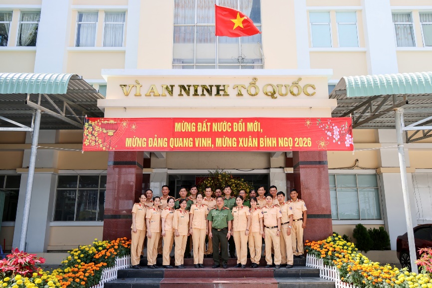 Đại tá Nguyễn Thanh Tràng, Thành ủy viên, Phó Giám đốc Công an thành phố thăm, động viên cán bộ, chiến sĩ Cảnh sát giao thông bảo đảm chế độ trực Tết nguyên đán Bính Ngọ năm 2026