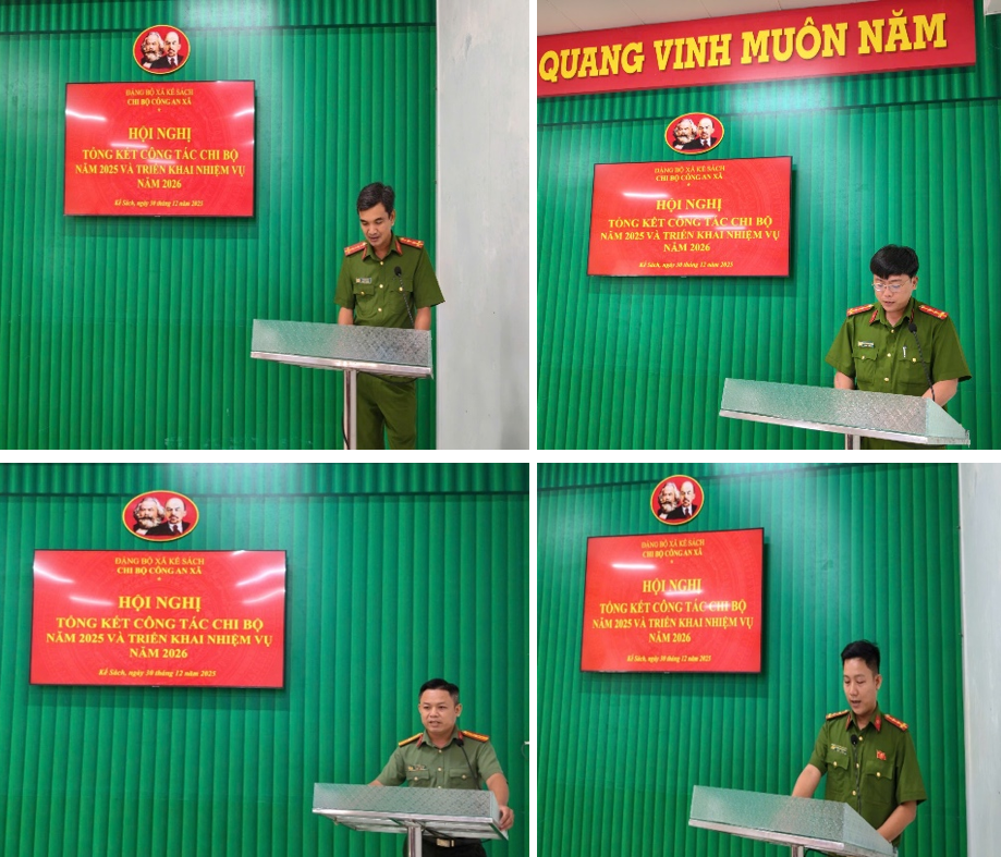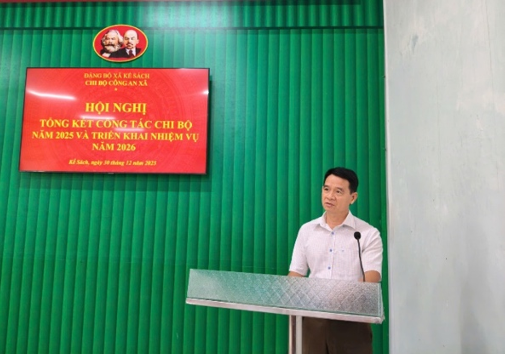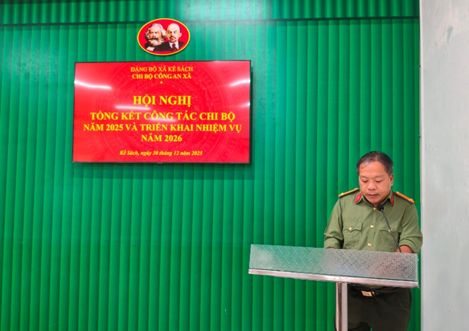 Nhằm đánh giá tình hình, kết quả thực hiện Nghị quyết và Chương trình công tác Chi bộ năm 2025, các kết luận chỉ đạo của Đảng ủy Công an Trung ương, Đảng ủy Công an thành phố, Đảng ủy xã Kế Sách từ đầu năm đến nay, chiều ngày 30/12/2025, Chi bộ Công an xã Kế Sách đã tổ chức Hội nghị tổng kết công tác Chi bộ năm 2025 và triển khai nhiệm vụ năm 2026. Đồng thời, trên cơ sở kết quả công tác Chi bộ năm 2025, đưa ra những dự báo sát, đúng tình hình liên quan đến các mặt công tác Chi bộ và xác định phương hướng, mục tiêu, nhiệm vụ, giải pháp công tác trọng tâm, có ý nghĩa “đột phá”; triển khai công tác chỉ đạo của Chi bộ trong 2026.