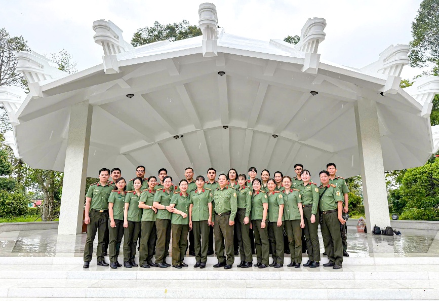 Cấp ủy, lãnh đạo, Đoàn viên, Hội viên phòng Quản lý xuất nhập cảnh chụp ảnh lưu niệm tại Khu di tích Mộ cụ Phó bảng Nguyễn Sinh Sắc
