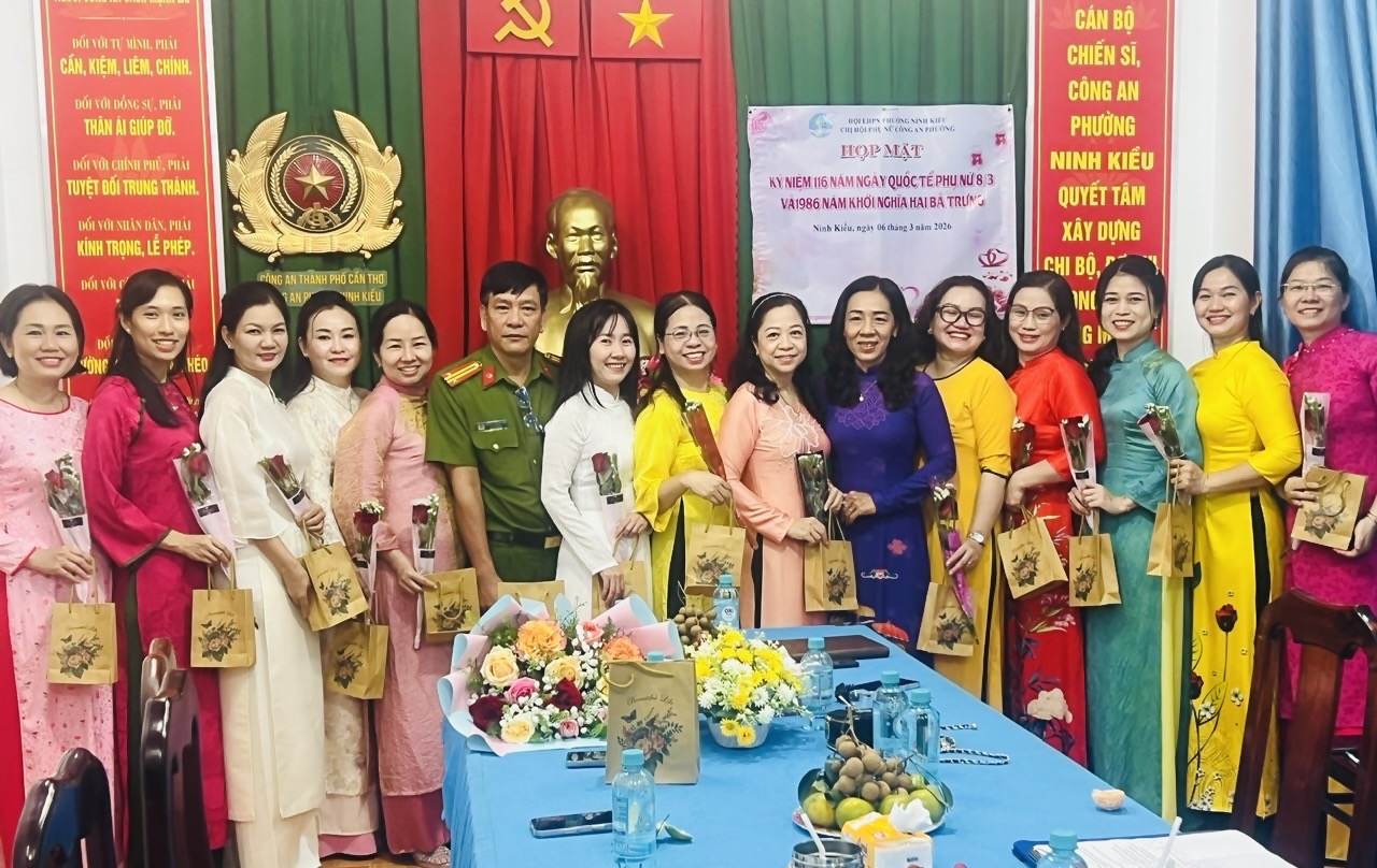 Nhân dịp kỷ niệm 116 năm Ngày Quốc tế Phụ nữ (08/3/1910 - 08/3/2026) và 1986 năm cuộc khởi nghĩa Hai Bà Trưng, Chi hội Phụ nữ Công an phường Ninh Kiều đã tổ chức buổi họp mặt nhằm ôn lại truyền thống vẻ vang của phụ nữ Việt Nam, đồng thời tạo không khí giao lưu, đoàn kết trong cán bộ, hội viên.