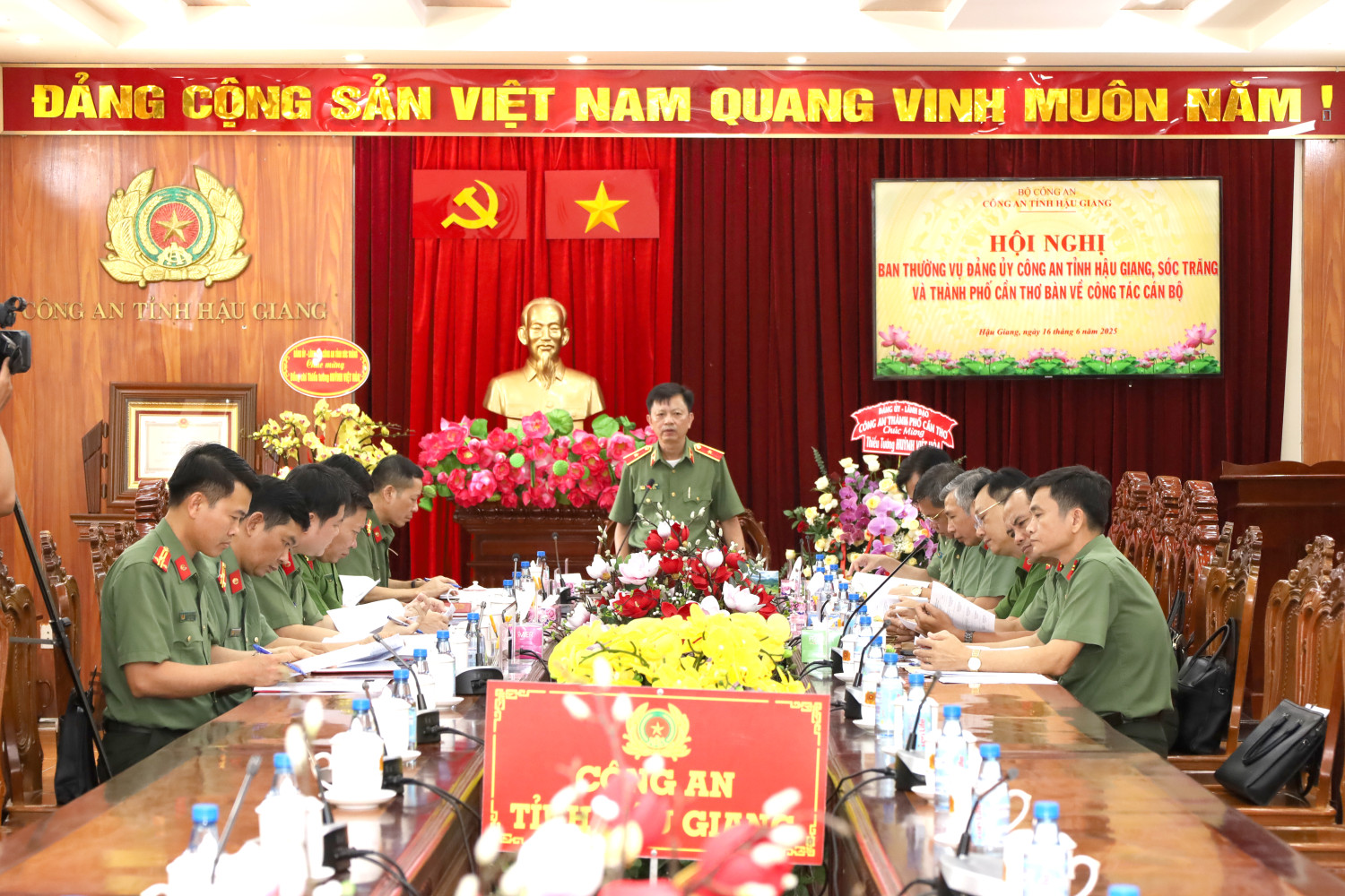 Hội nghị Ban Thường vụ Đảng ủy Công an tỉnh Hậu Giang, Sóc Trăng và thành phố Cần Thơ về công tác sắp xếp tổ chức bộ máy, đội ngũ cán bộ - tháng 6/2025