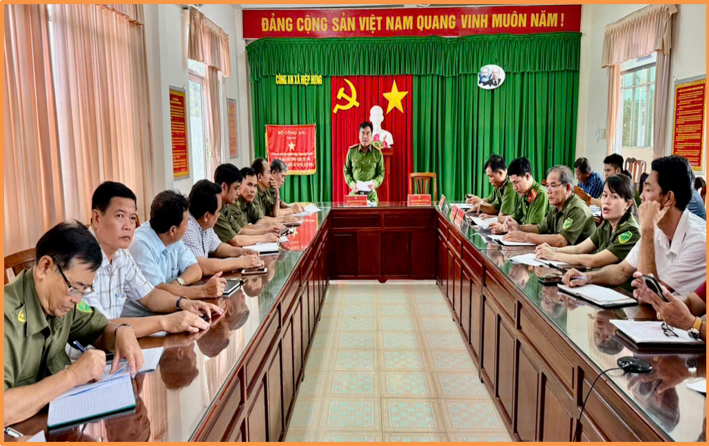 Đồng chí Thượng tá Nguyễn Hoàng Ba, Trưởng Công an xã Hiệp Hưng triển khai kế hoạch tổ chức lấy ý kiến Nhân dân vào dự thảo văn kiện Đại hội XIV của Đảng qua ứng dụng VneID.
