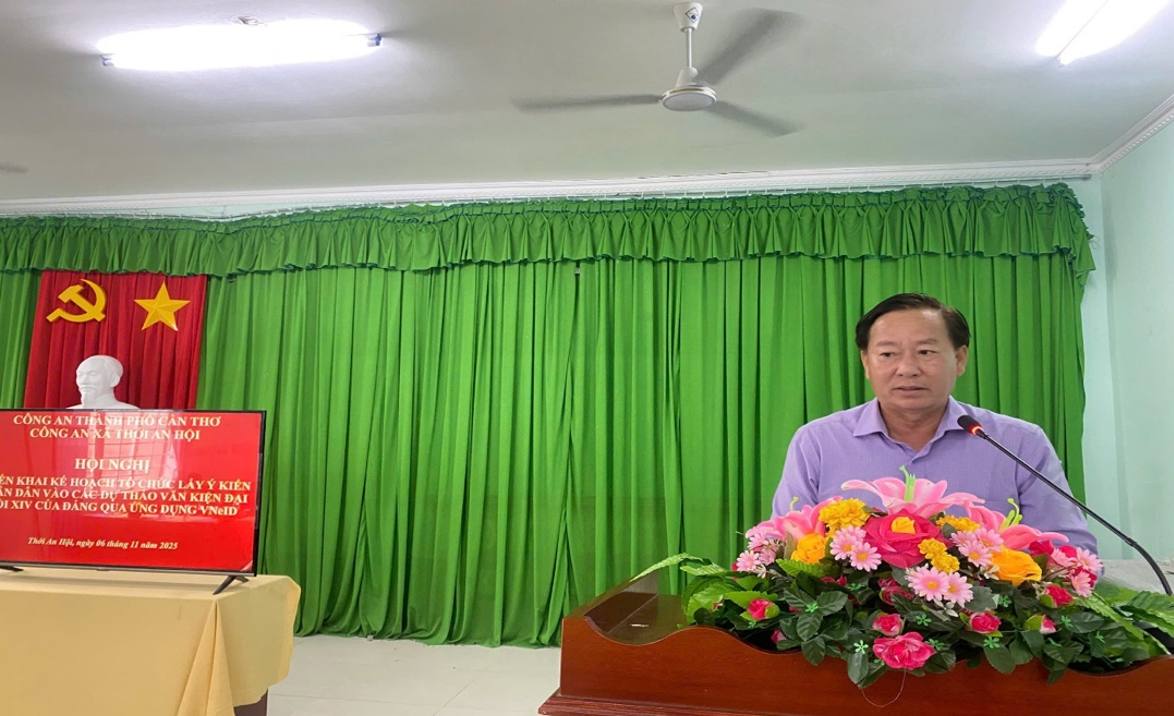 Tại xã Thới An Hội, Công an xã tham mưu Ủy ban nhân dân xã ban hành kế hoạch triển khai lấy ý kiến Nhân dân qua ứng dụng VNeID. Đây là dịp để Nhân dân thể hiện quyền làm chủ, góp phần xây dựng đường lối phát triển đất nước. Lực lượng Công an xã chủ động hướng dẫn người dân cài đặt, sử dụng ứng dụng, bảo đảm việc đóng góp ý kiến diễn ra công khai, minh bạch và hiệu quả.