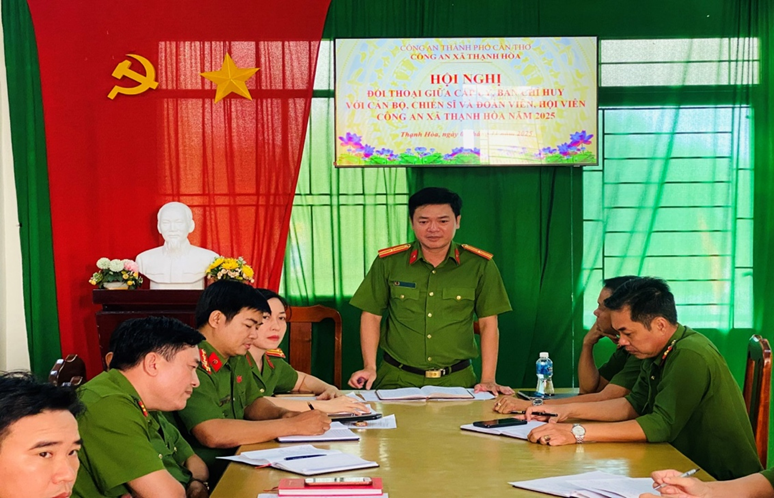 Tại phường Long Bình, các xã Kế Sách, Thạnh Hòa và Vĩnh Thạnh, Công an các địa phương đã tổ chức các buổi đối thoại giữa cấp ủy, Ban Chỉ huy với cán bộ, chiến sĩ, đoàn viên, hội viên. Cụ thể, Công an xã Kế Sách giải đáp, ghi nhận ý kiến và chỉ đạo triển khai các nhiệm vụ; Công an phường Long Bình tập trung tháo gỡ các vấn đề liên quan chế độ, chính sách và tăng cường phối hợp quản lý an ninh, trật tự; Công an xã Thạnh Hòa tiếp nhận đề xuất về trang thiết bị, tập huấn nghiệp vụ và phân công nhiệm vụ, đồng thời củng cố tinh thần đoàn kết; Công an xã Vĩnh Thạnh thường xuyên lắng nghe, trao đổi và hướng dẫn lực lượng an ninh, trật tự cơ sở, kịp thời tháo gỡ khó khăn, nâng cao hiệu quả công tác, góp phần giữ vững an ninh, trật tự tại địa phương.
