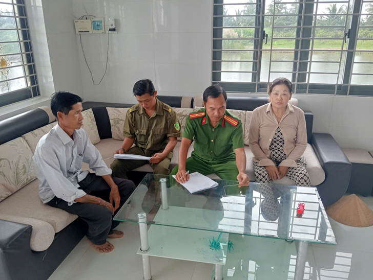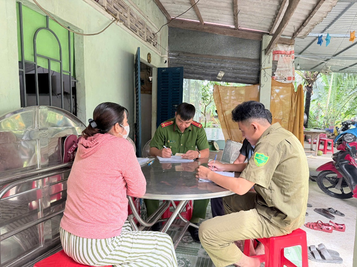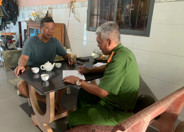 Công an xã An Thạnh đến từng hộ dân thu thập thông tin của phương tiện, chủ phương tiện và giấy phép lái xe