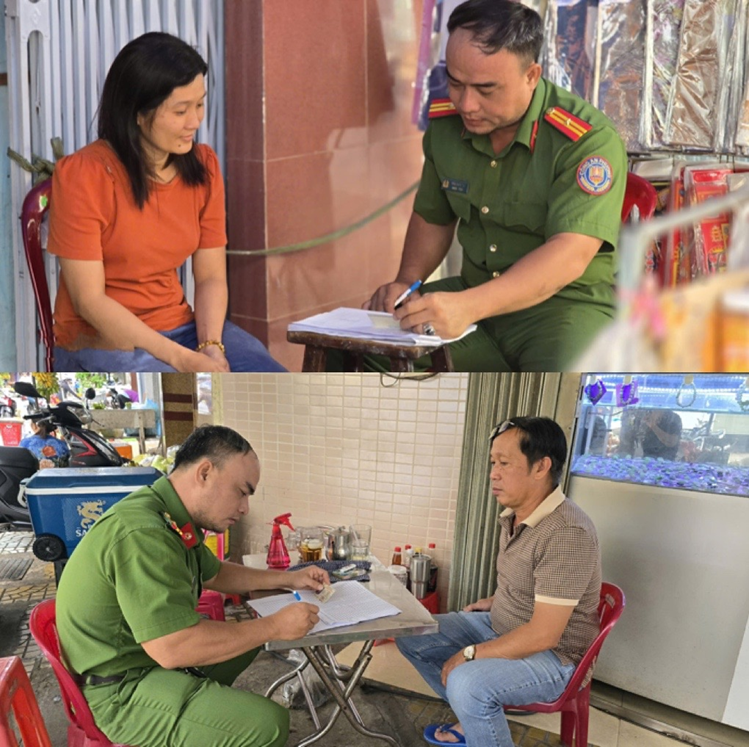 Cán bộ, chiến sĩ Công an phường Phú Lợi đến từng hộ dân để rà soát thông tin phương tiện và giấy phép lái xe