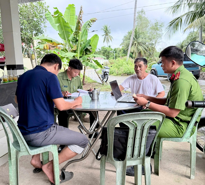 Công an xã Cù Lao Dung số hoá hồ sơ đăng ký phương tiện, đến nhà người dân rà soát, thu thập dữ liệu đăng ký phương tiện, giấy phép lái xe