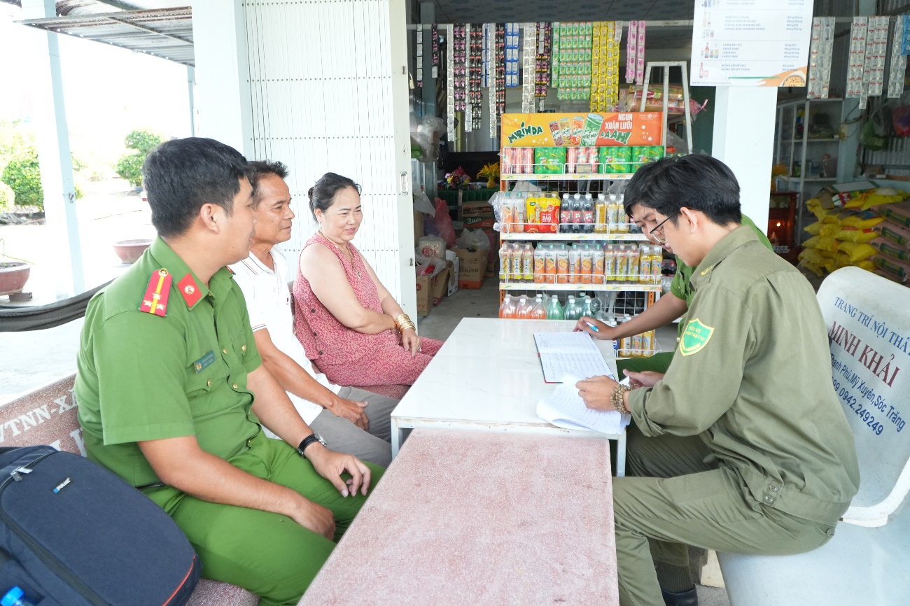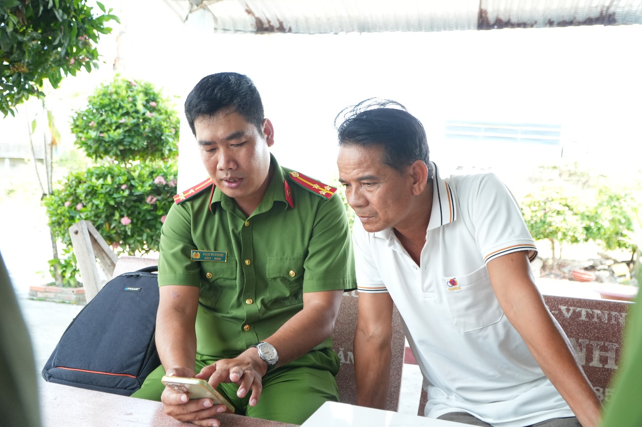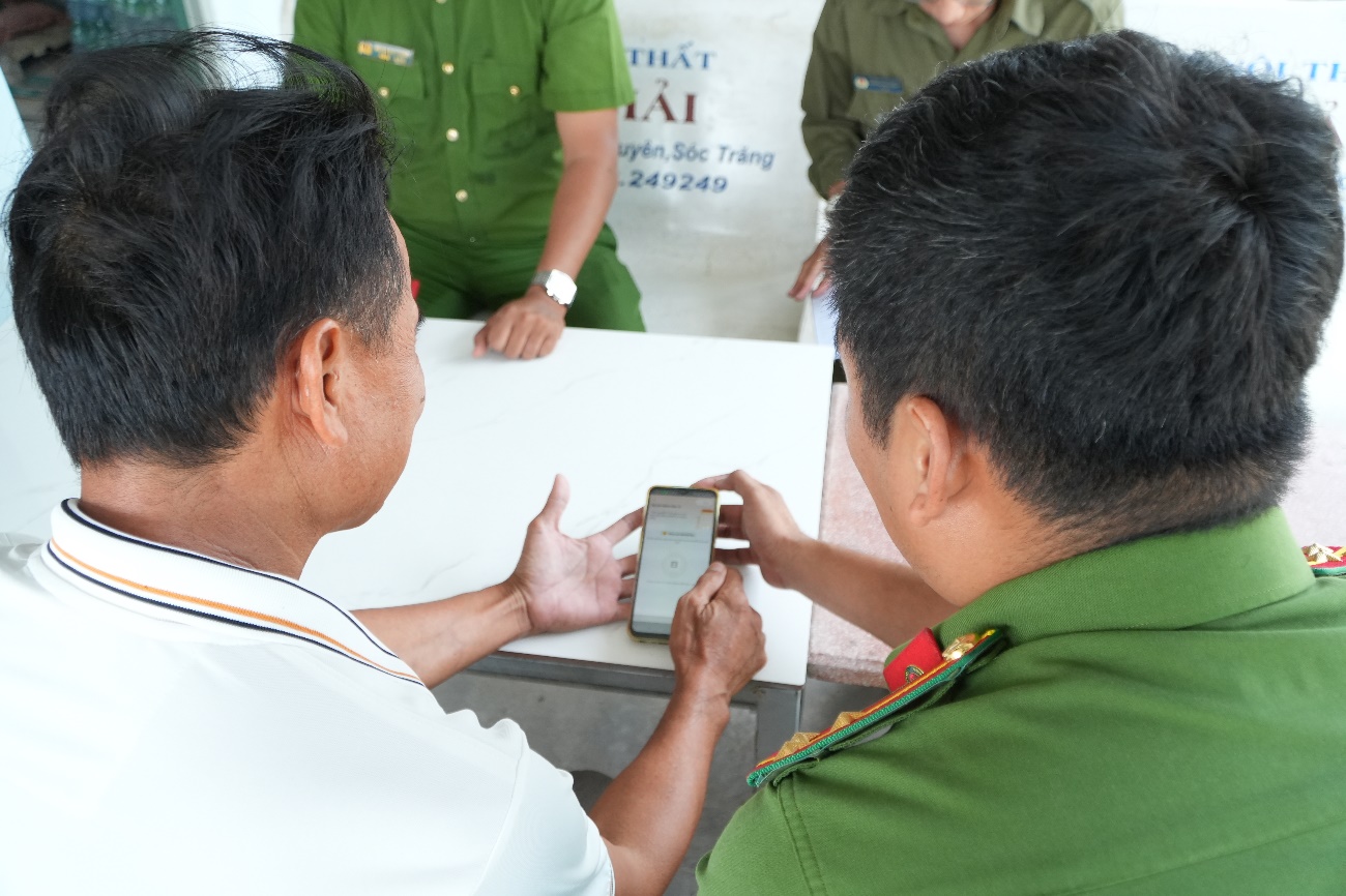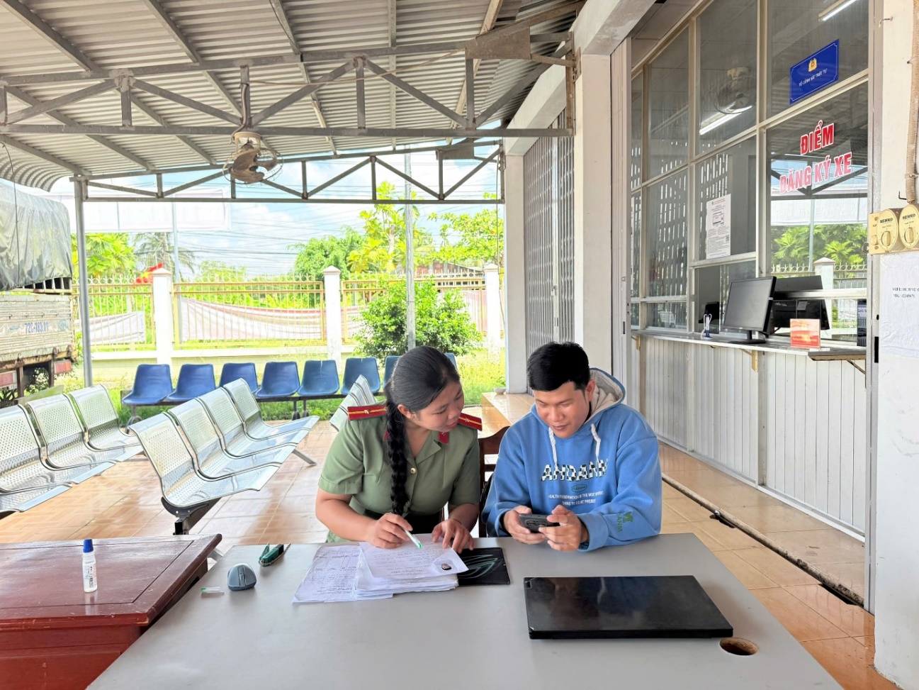 Công an xã Hòa Tú kết hợp rà soát thông tin cư trú và hướng dẫn người dân tích hợp các tiện ích trên ứng dụng VNeID