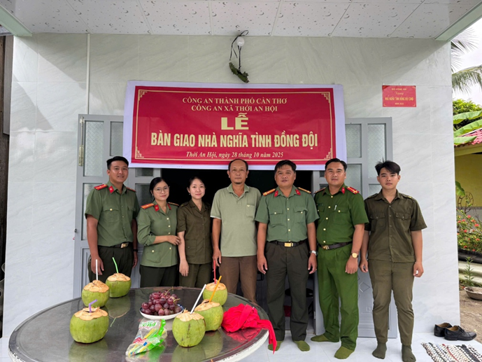 Tại xã An Thạnh và xã Thới An Hội, Công an 02 xã đã phối hợp cấp ủy, chính quyền địa phương và các đơn vị liên quan tổ chức bàn giao 05 căn nhà “Nghĩa tình đồng đội Công an nhân dân” cho các hộ gia đình có công thờ cúng liệt sĩ, cán bộ, chiến sĩ và người có công có hoàn cảnh khó khăn. Đây là hoạt động mang ý nghĩa nhân văn sâu sắc, thể hiện đạo lý “uống nước nhớ nguồn”, tinh thần đoàn kết, tương thân tương ái, góp phần chăm lo chính sách hậu phương Công an và lan tỏa hình ảnh người chiến sĩ Công an tận tụy, nghĩa tình.