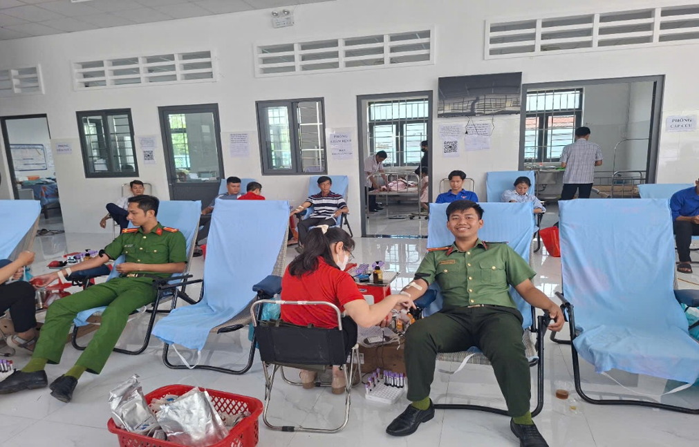 Cán bộ, chiến sĩ Công an xã Thuận Hòa tham gia hiến máu tình nguyện