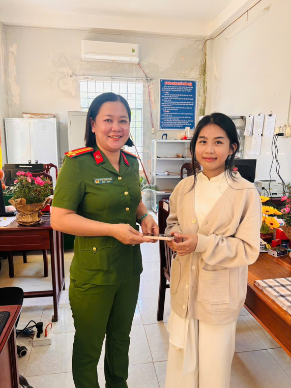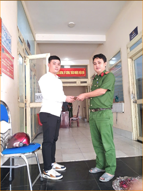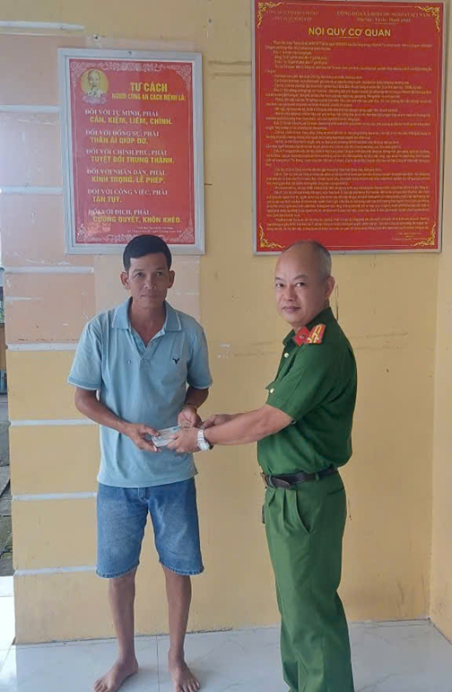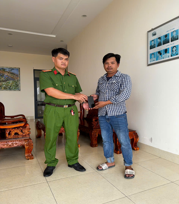 Công an xã Vĩnh Viễn trao lại điện thoại cho người dân bị đánh rơi