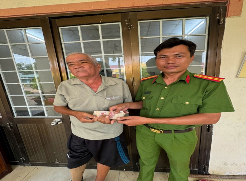 Công an xã Đông Hiệp trao trả lại tài sản cho người dân bị đánh rơi