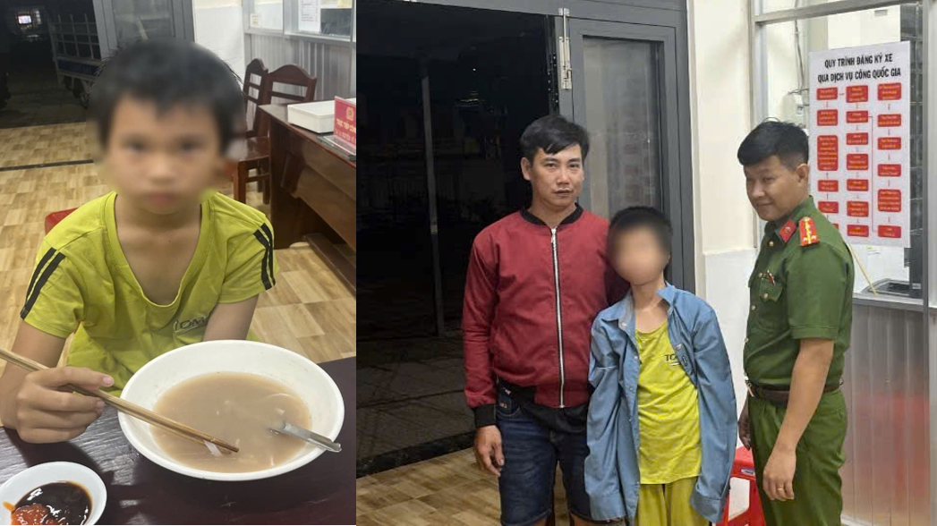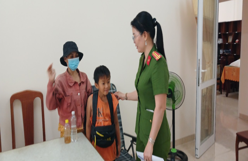 Công an xã Tân Bình tiếp nhận và chăm sóc các cháu nhỏ đi lạc trước khi bàn giao cho gia đình.