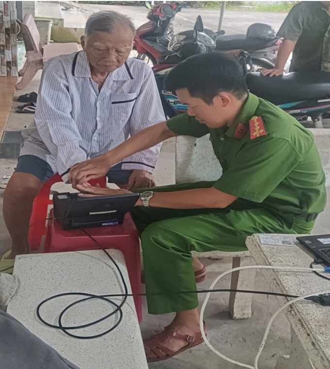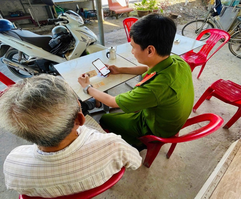Cán bộ Công an xã Thạnh Hòa đến tận nhà cấp căn cước cho người già yếu