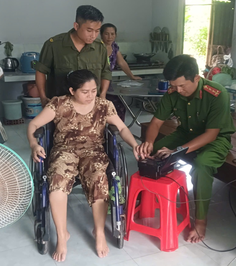 Cán bộ Công an xã Thạnh Hòa đến tận nhà cấp căn cước cho người bệnh tật