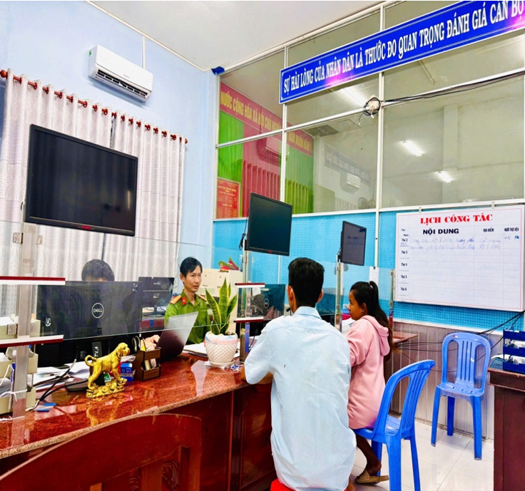 Công an xã Đại Ngãi tiếp nhận và giải quyết thủ tục hành chính cho người dân, đảm bảo nhanh gọn, thuận tiện.