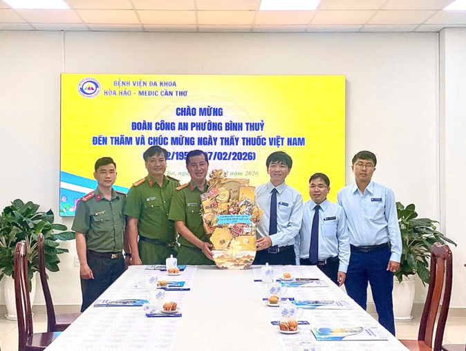 Nhân kỷ niệm Ngày Thầy thuốc Việt Nam (27/2), Công an phường Bình Thủy tổ chức đoàn đến thăm hỏi, chúc mừng đội ngũ y, bác sĩ đang công tác tại Trạm Y tế phường Bình Thủy, Bệnh viện Chỉnh hình và Phục hồi chức năng Cần Thơ, Bệnh viện Đa khoa Tâm Minh Đức và Bệnh viện Đa khoa Hòa Hảo Medic trên địa bàn thành phố Cần Thơ.