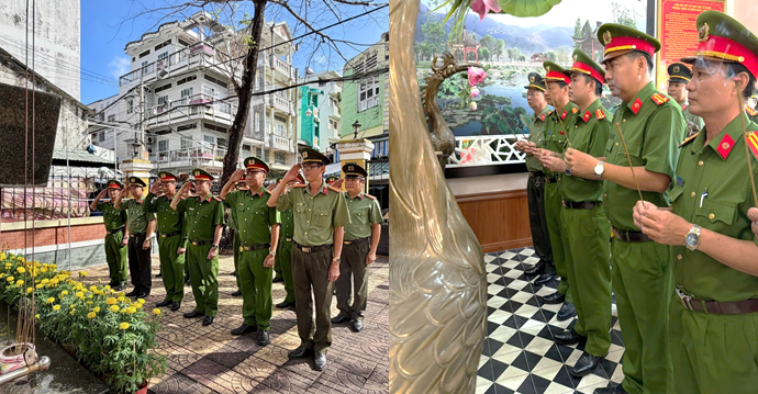 Ban chỉ huy và cán bộ, chiến sĩ Công an phường dâng hoa, dâng hương tưởng niệm các Anh hùng liệt sĩ