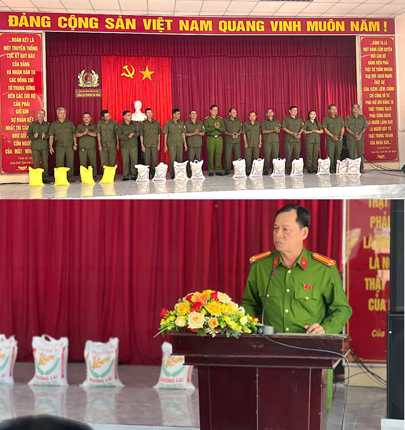 Cùng trong chuỗi hoạt động, ngày 10/02/2026, Chỉ huy Công an phường đã tổ chức buổi gặp mặt thân mật, động viên và trao quà cho các thành viên thuộc lực lượng tham gia bảo vệ an ninh, trật tự ở cơ sở. Tại buổi gặp mặt, thay mặt Đảng ủy, Ban Chỉ huy Công an phường, Trung tá Đoàn Văn Hoài, Phó Trưởng Công an phường ghi nhận và biểu dương những đóng góp tích cực của lực lượng an ninh cơ sở trong công tác phối hợp cùng Công an phường thực hiện nhiệm vụ bảo đảm an ninh, trật tự tại địa phương. Đồng chí nhấn mạnh, lực lượng an ninh cơ sở chính là “cánh tay nối dài của lực lượng Công an”, góp phần quan trọng trong việc nắm tình hình, phòng ngừa, phát hiện và giải quyết kịp thời các vụ việc ngay từ cơ sở, giữ vững ổn định an ninh, trật tự trên địa bàn. Công an phường đã trao tặng cho 148 lực lượng an ninh cơ sở, mỗi phần quà là 10kg gạo.