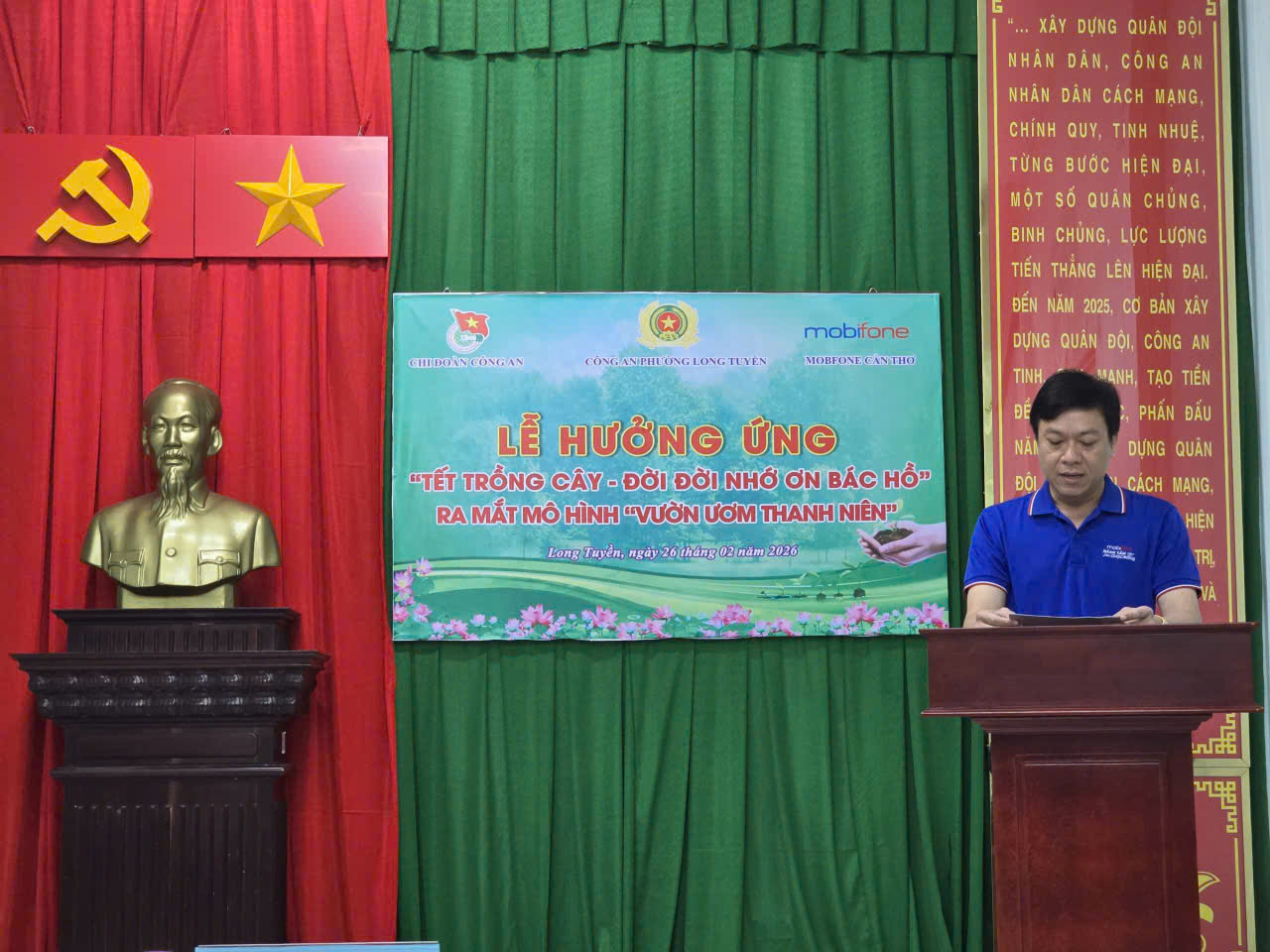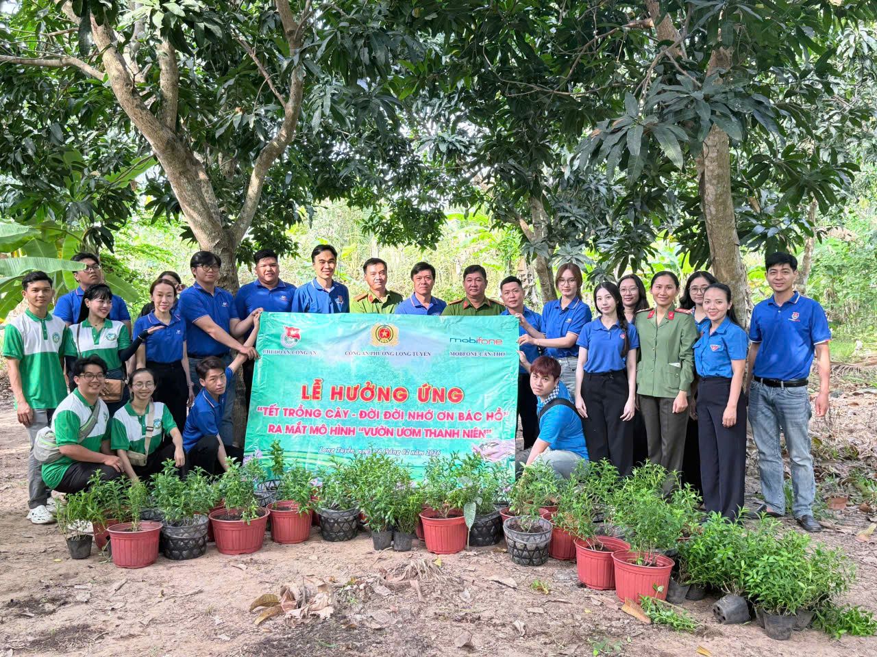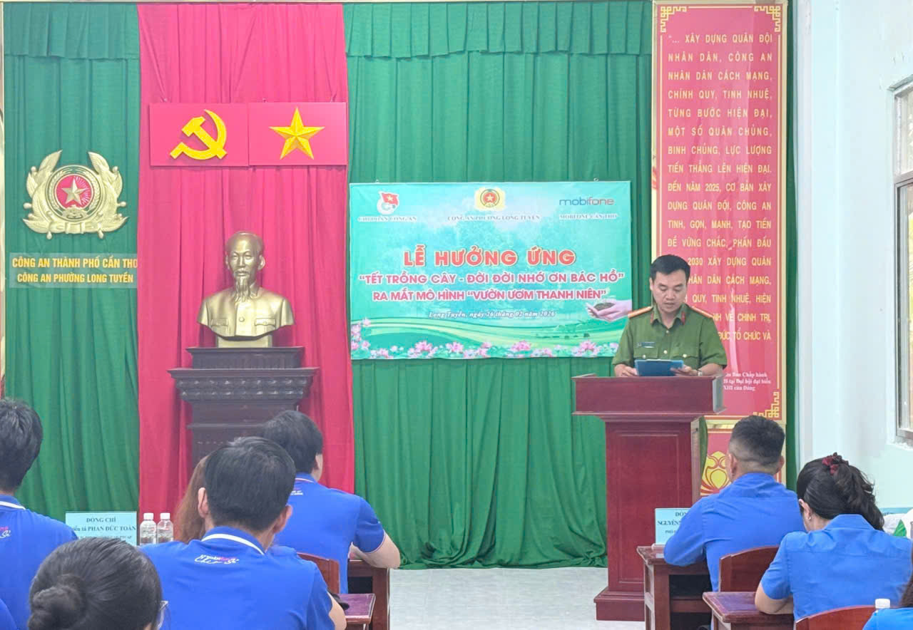 Nhằm hưởng ứng phong trào “Tết trồng cây đời đời nhớ ơn Bác Hồ”, đồng thời phát huy vai trò xung kích của tuổi trẻ trong công tác bảo vệ môi trường, sáng ngày 26/02/2026, Công an phường Long Tuyền phối hợp cùng MobiFone Cần Thơ tổ chức Lễ hưởng ứng Tết trồng cây và trao bảng tượng trưng hỗ trợ thực hiện công trình “Vườn ươm thanh niên”.
