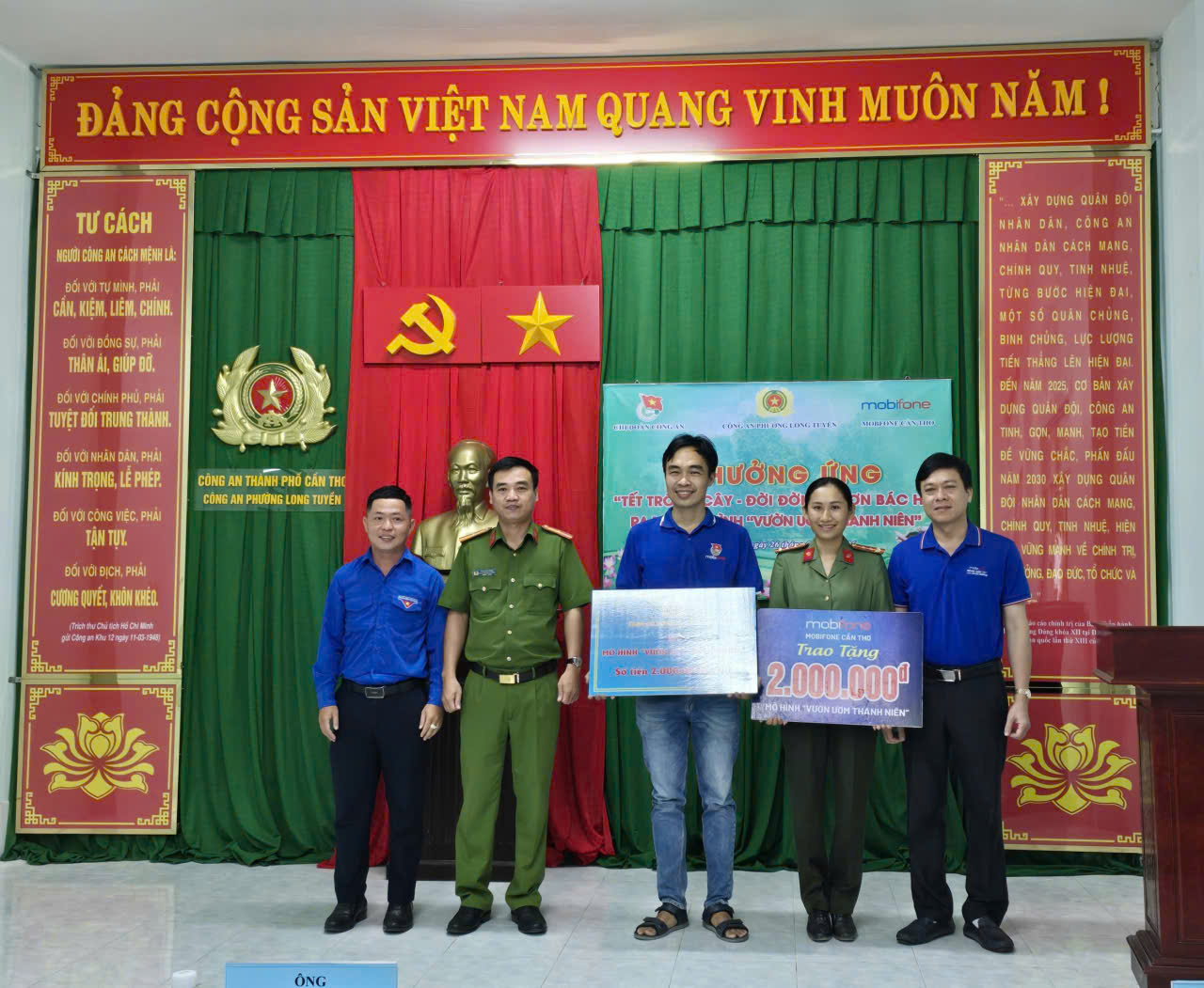 Tham dự chương trình có đại diện Ban Chỉ huy Công an phường Long Tuyền, Lãnh đạo MobiFone Cần Thơ, Đoàn phường Long Tuyền, Công ty in bao bì Đại Chúng, cán bộ, chiến sĩ và đoàn viên thanh niên ba đơn vị.
