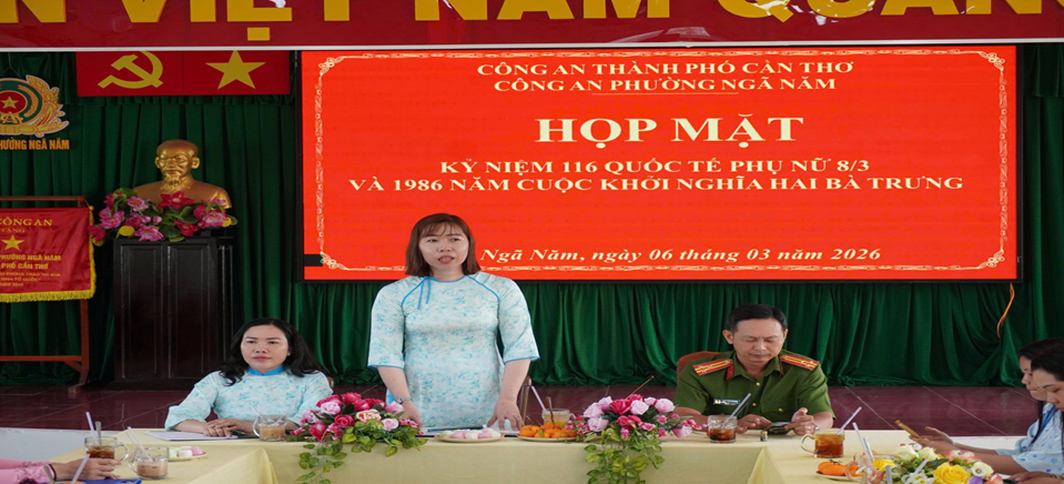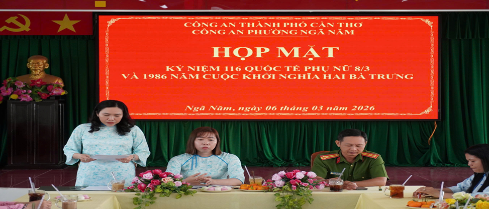 Sáng ngày 06/3, Chi hội Phụ nữ Công an phường Ngã Năm long trọng tổ chức buổi họp mặt kỷ niệm 116 năm ngày Quốc tế Phụ nữ (8/3/1910 - 8/3/2026). Tham dự buổi họp mặt có Thượng tá Nguyễn Văn Hai, Ủy viên BTV Đảng ủy phường - Bí thư Đảng ủy, Trưởng Công an phường; đồng chí Nguyễn Thị Hồng Diệu - Ủy viên BTV Hội liên hiệp phụ nữ phường Ngã Năm, cùng dự có các hội viên Hội phụ nữ, hợp đồng lao động Công an phường và các đồng chí nữ An ninh trật tự ở cơ sở.