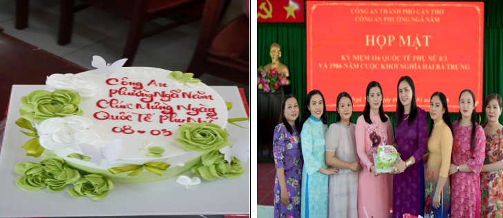 Tại buổi họp mặt, các đại biểu đã cùng nhau ôn lại truyền thống vẻ vang của phụ nữ Việt Nam, đặc biệt là tinh thần yêu nước, ý chí quật cường của Hai Bà Trưng - hai vị nữ anh hùng dân tộc đã lãnh đạo cuộc khởi nghĩa chống giặc ngoại xâm, làm rạng danh truyền thống anh hùng, bất khuất của phụ nữ Việt Nam. Thay mặt lãnh đạo đơn vị, Thượng tá Nguyễn Văn Hai - Ủy viên BTV Đảng ủy phường - Bí thư Đảng ủy - Trưởng Công an phường đã gửi lời chúc mừng tốt đẹp nhất tới toàn thể các đồng chí; đồng thời, ghi nhận và biểu dương những đóng góp tích cực của các đồng chí trong công tác bảo đảm an ninh trật tự trên địa bàn. Những món quà nhỏ cùng lời chúc ý nghĩa thể hiện sự quan tâm, động viên kịp thời của tập thể đơn vị đối với hội viên Hội phụ nữ.
