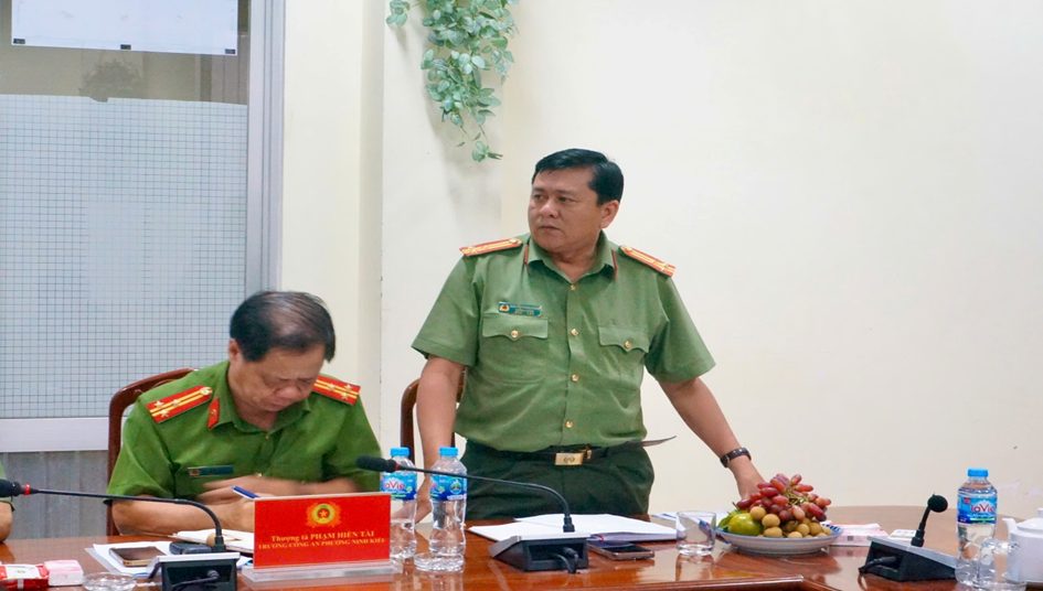 Thượng tá Phạm Hiền Tài, Trưởng Công an phường Ninh Kiều phát biểu tại Hội nghị