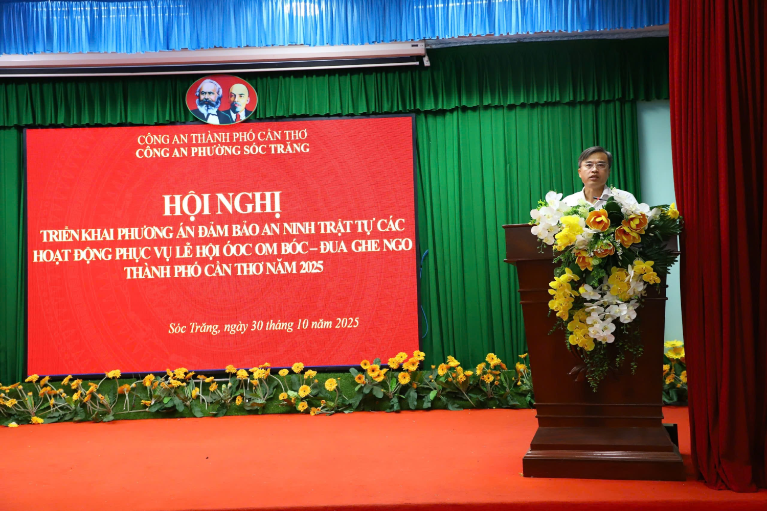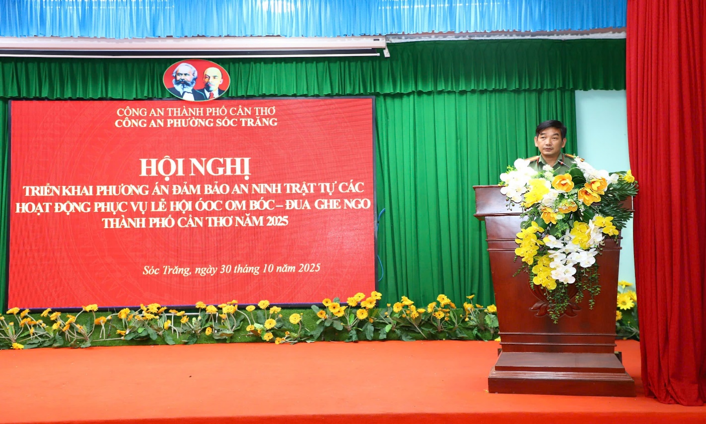 Theo đó, ngày 30/10/2025, Công an phường Sóc Trăng đã tổ chức Hội nghị triển khai phương án đảm bảo an ninh, trật tự các hoạt động Lễ hội diễn ra trên địa bàn. Đến dự và chỉ đạo Hội nghị có đồng chí Huỳnh Đức Dũng, Phó Bí thư Đảng ủy, Chủ tịch Ủy ban nhân dân phường Sóc Trăng. Tham dự Hội nghị còn có đại diện lãnh đạo các ban, ngành, đoàn thể phường và cán bộ, chiến sĩ Công an phường. Lễ hội Oóc Om Bóc - Đua ghe Ngo thành phố Cần Thơ năm 2025 diễn ra từ ngày 03/11 đến 05/11/2025 trên địa bàn phường Sóc Trăng và phường Phú Lợi với các hoạt động: Lễ khai mạc Lễ hội Oóc Om Bóc - Đua ghe Ngo thành phố Cần Thơ năm 2025, Giải đua ghe Ngo, Trình diễn thả đèn nước (Lôiprotip) và ghe Cà Hâu, Lễ cúng trăng, Hội chợ xúc tiến thương mại OCOP và đặc sản vùng miền cùng nhiều hoạt động văn hóa, Lễ hội khác. Nhằm đảm bảo an ninh, an toàn cho Lễ hội, Công an phường phối hợp với Ban Chỉ huy Quân sự tăng cường lực lượng, phương tiện, trang thiết bị kỹ thuật tại các địa điểm tổ chức. Đồng thời, phối hợp với Công an các xã, phường lân cận nắm địa bàn, quản lý chặt các loại đối tượng, kịp thời đấu tranh với các hành vi vi phạm pháp luật, đặc biệt là trộm cắp, cướp, cướp giật tài sản. Công tác quản lý cư trú, ngành nghề kinh doanh có điều kiện, trật tự an toàn giao thông, phòng cháy, chữa cháy cũng được triển khai đồng bộ. Công an phường phối hợp với Phòng Cảnh sát giao thông, Công an thành phố xây dựng phương án bố trí lực lượng đảm bảo an ninh, trật tự trước, trong và sau thời gian diễn ra các hoạt động lễ hội.