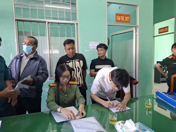Cán bộ Công an phường Sóc Trăng hướng dẫn thanh niên thực hiện thủ tục đăng ký nghĩa vụ quân sự