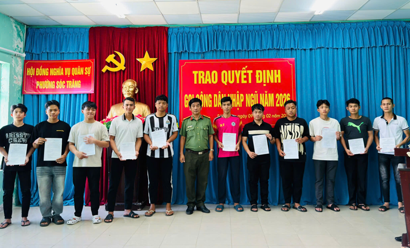 Thực hiện Kế hoạch của Công an thành phố Cần Thơ về bảo đảm an ninh, trật tự phục vụ công tác tuyển chọn, gọi công dân nhập ngũ và tham gia nghĩa vụ Công an nhân dân năm 2026, Công an phường Sóc Trăng đã chủ động tham mưu Đảng ủy, Ủy ban nhân dân phường ban hành kế hoạch triển khai cụ thể, phân công nhiệm vụ rõ người, rõ việc, bảo đảm tuyệt đối an toàn lễ giao nhận quân.