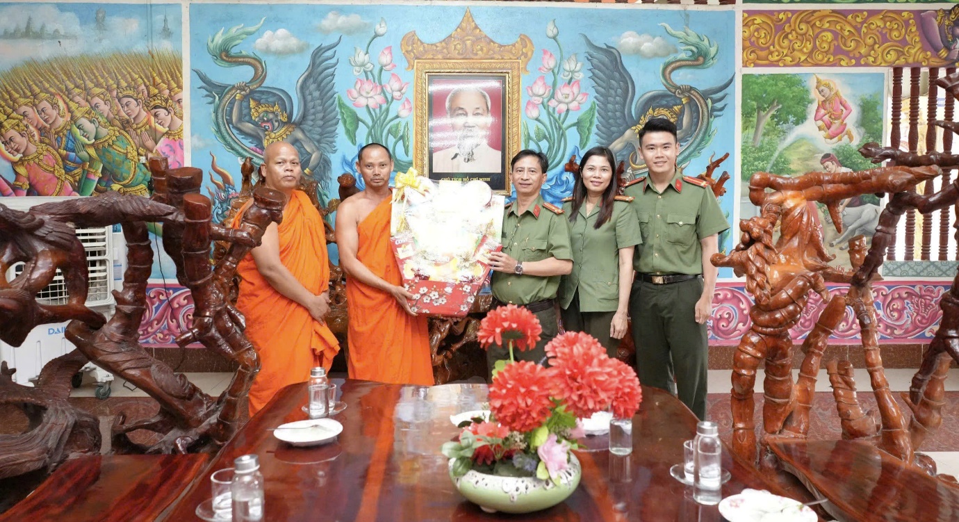 Tại các điểm đến, lãnh đạo Công an phường đã thông tin nhanh về tình hình an ninh, trật tự trên địa bàn; đồng thời ghi nhận, biểu dương những đóng góp tích cực của các vị chức sắc, sư sãi và đồng bào Khmer trong công tác giữ gìn an ninh trật tự. Đặc biệt, các chùa đã phát huy tốt vai trò trong tuyên truyền, vận động phật tử tham gia phong trào “Toàn dân bảo vệ an ninh Tổ quốc”, góp phần giữ vững ổn định chính trị, trật tự an toàn xã hội tại địa phương. Đồng chí Trưởng đoàn khẳng định, đồng bào Khmer là bộ phận không thể tách rời của khối đại đoàn kết toàn dân tộc; Đảng, Nhà nước luôn quan tâm, tạo điều kiện để bà con phát triển kinh tế, nâng cao đời sống vật chất và tinh thần.