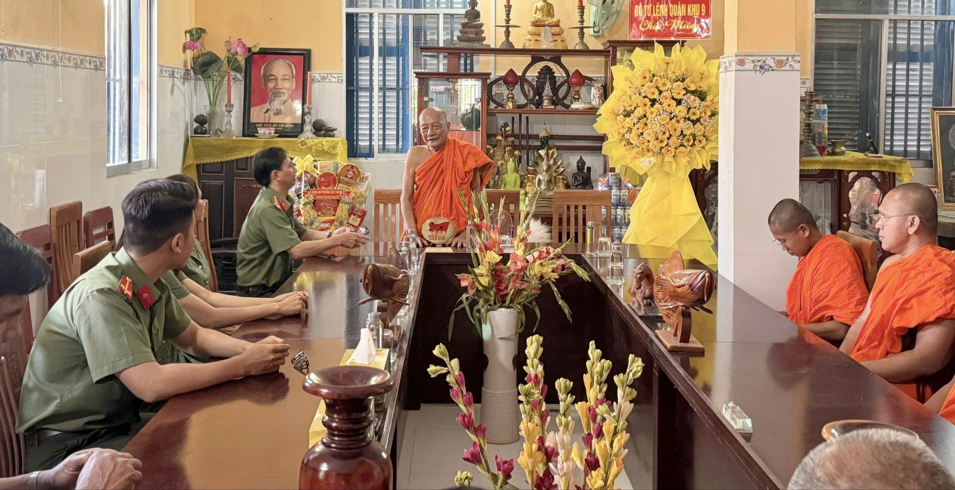 Nhân dịp Tết cổ truyền Chôl Chnăm Thmây 2026 của đồng bào Khmer, Công an phường Sóc Trăng đã tổ chức đoàn đến thăm hỏi, chúc Tết các vị chức sắc, tăng ni và bà con phật tử trên địa bàn, thể hiện sự quan tâm, gắn bó của lực lượng Công an cơ sở đối với đồng bào dân tộc Khmer.