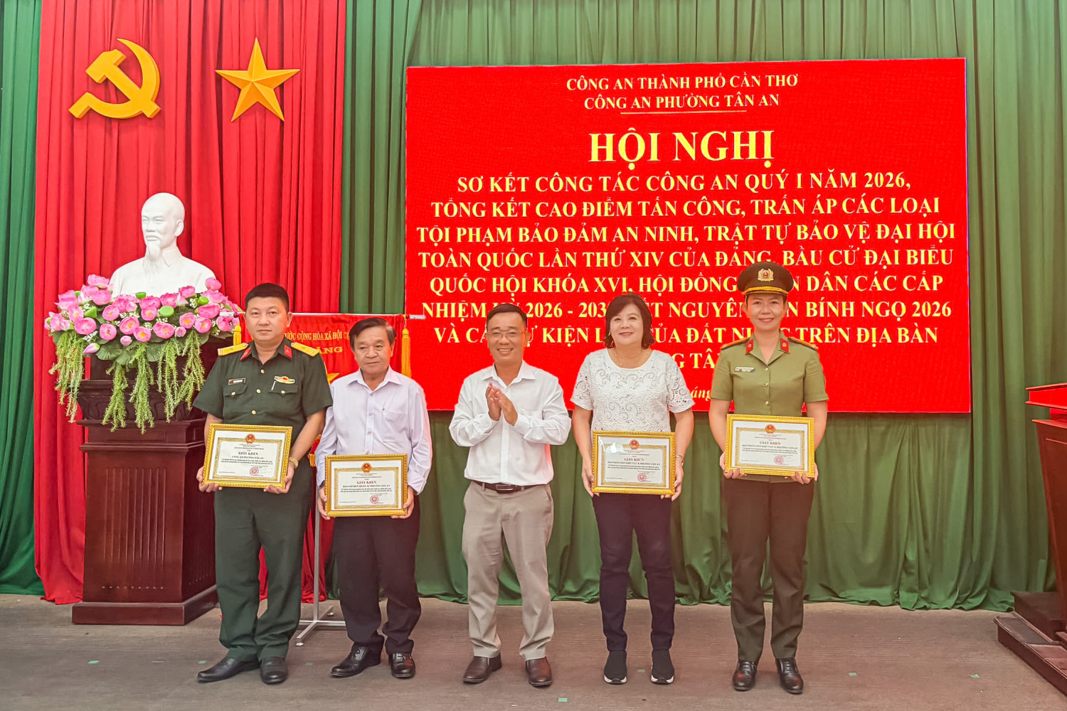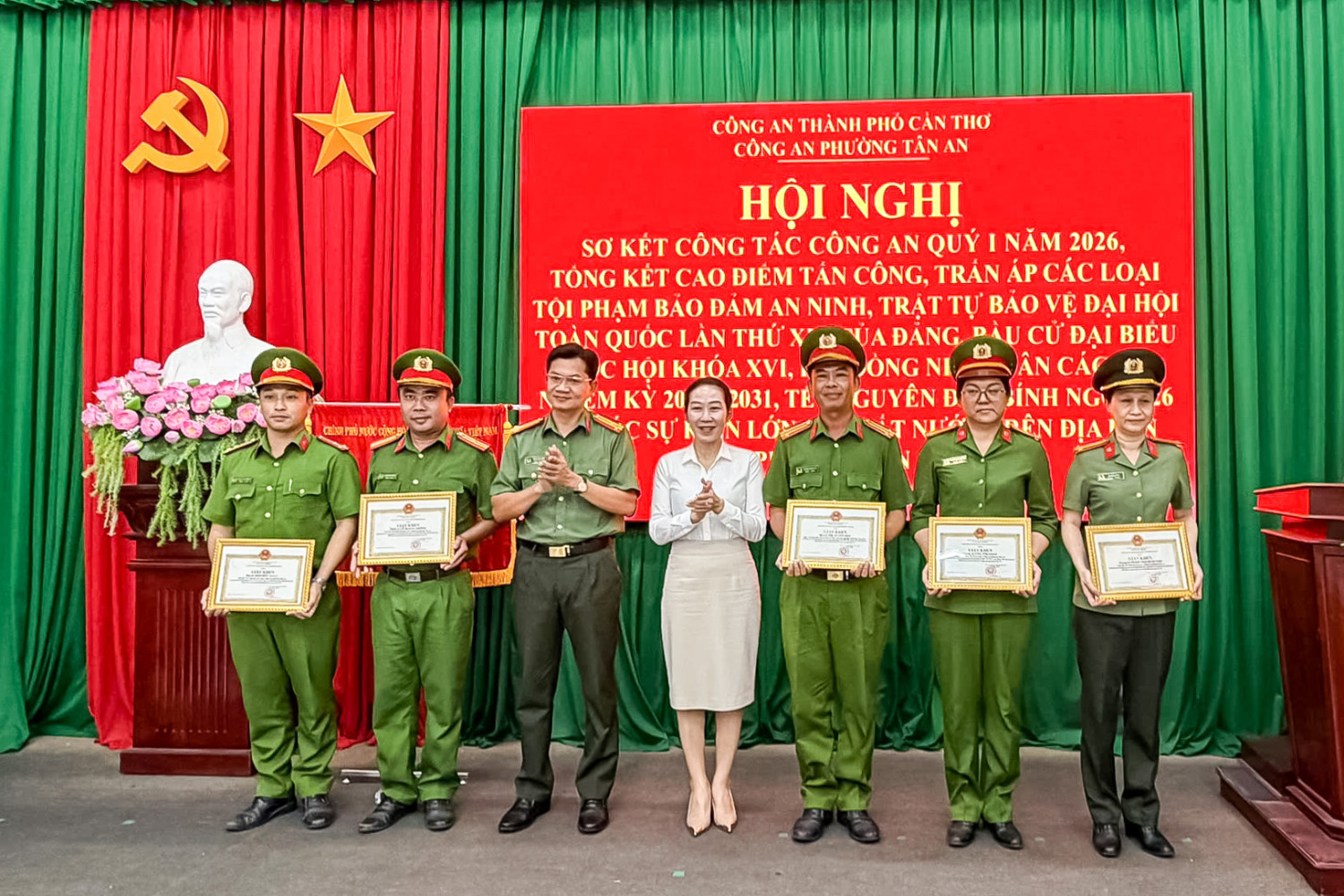 Hội nghị cũng đã đề ra phương hướng, nhiệm vụ trọng tâm công tác quý II/2026, với quyết tâm xây dựng lực lượng Công an phường ngày càng chính quy, tinh nhuệ, hiện đại, đáp ứng yêu cầu nhiệm vụ trong tình hình mới. Nhân dịp này, 09 tập thể và 46 cá nhân đã được Bộ Công an, Giám đốc Công an thành phố và Chủ tịch UBND phường khen thưởng.