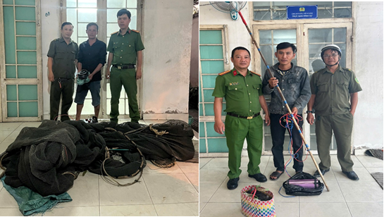 Công an phường thu giữ các tang vật đánh bắt thủy hải sản trái phép