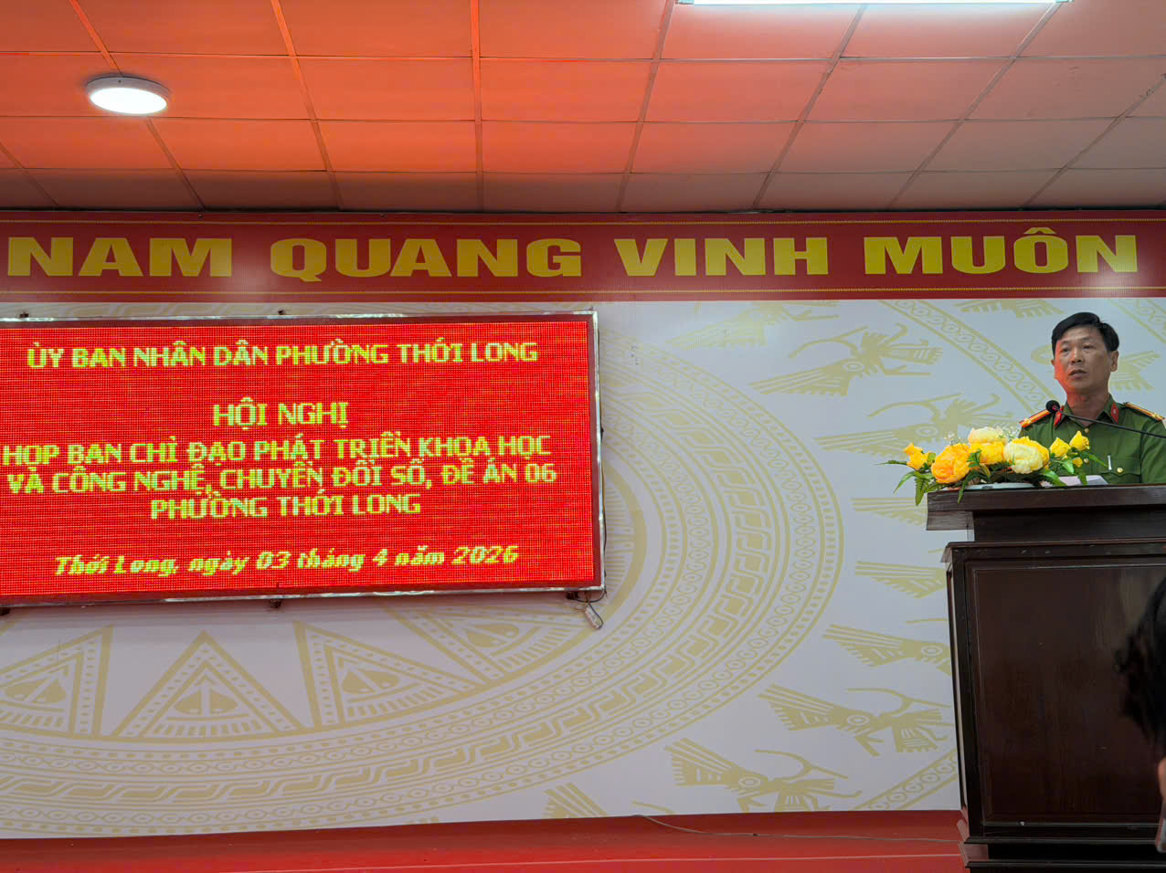 Công an phường Thới Long tham dự Hội nghị Ban Chỉ đạo phát triển khoa học, công nghệ, đổi mới sáng tạo, chuyển đổi số và Đề án 06 phường Thới Long năm 2026