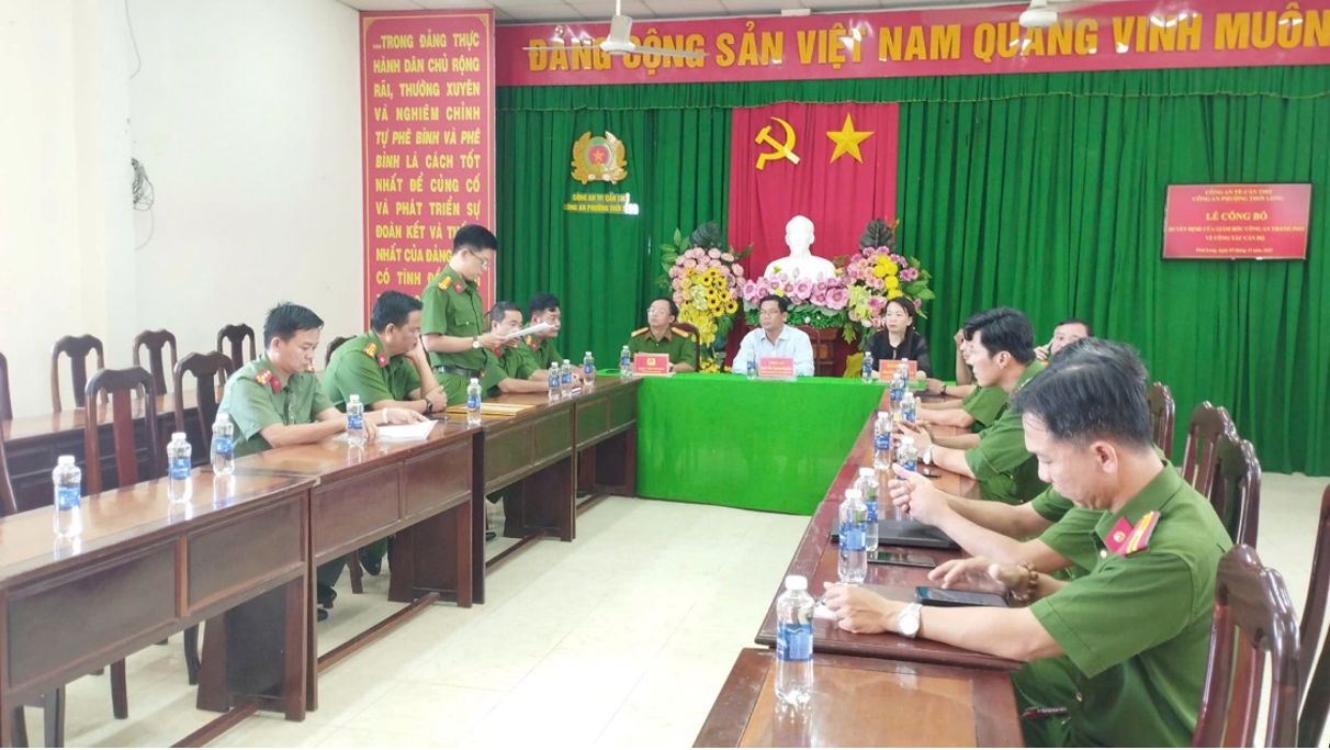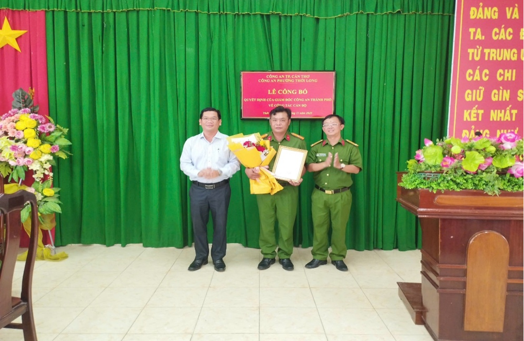 Thừa ủy quyền của Giám đốc Công an thành phố, đồng chí Trần Văn Sang, Trưởng Công an phường đã trao Quyết định điều động Thiếu tá Nguyễn Chí Thanh, Phó Đội trưởng Đội Phòng ngừa, điều tra tội phạm xâm phạm sở hữu, Phòng Cảnh sát hình sự đến nhận công tác và giữ chức vụ Phó Trưởng Công an phường Thới Long, phụ trách Tổ Cảnh sát phòng chống tội phạm; đồng thời công bố Quyết định điều động Trung tá Trần Công Thành, Phó Trưởng Công an phường đến nhận công tác tại Công an phường Trung Nhứt.