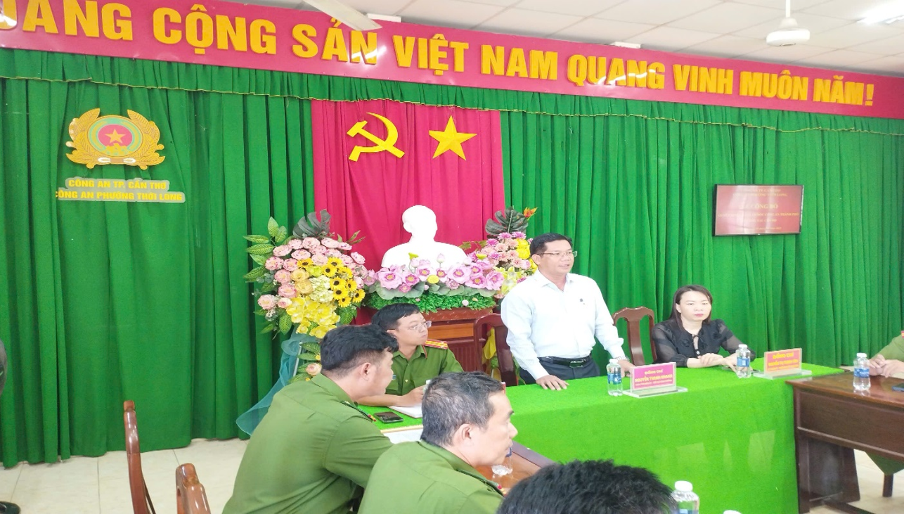 Tại phường Thới Long, đồng chí Trung tá Trần Văn Sang, Trưởng Công an phường chủ trì buổi lễ. Tham dự có đồng chí Nguyễn Thanh Nhanh, Phó Bí thư Đảng ủy, Chủ tịch Ủy ban nhân dân phường; đồng chí Nguyễn Thị Thanh Tâm, Ủy viên Ban Thường vụ Đảng ủy, Trưởng Ban Xây dựng Đảng, cùng tập thể Ban Chỉ huy, cán bộ, chiến sĩ Công an phường.
